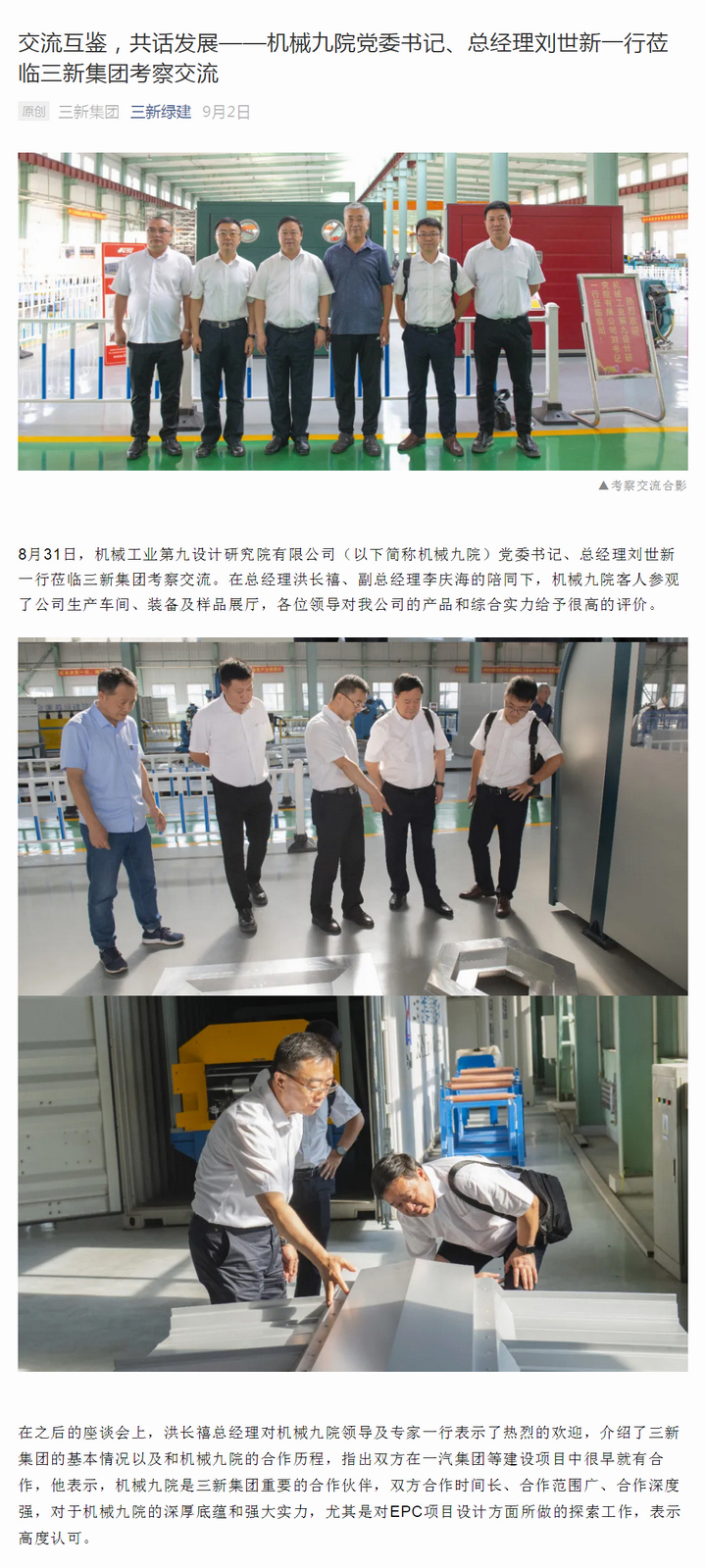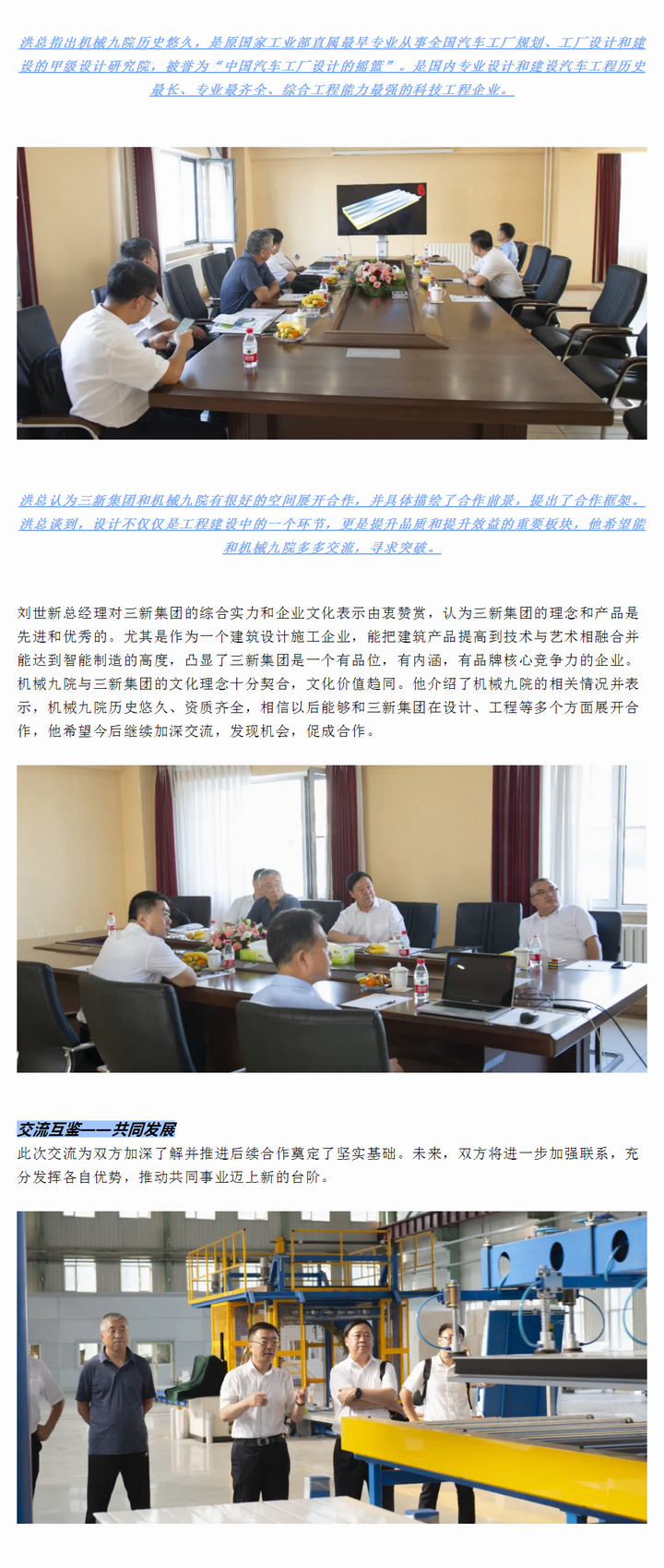 交流互鑒,共話發(fā)展——機(jī)械九院黨委書(shū)記、總經(jīng)理劉世新一行蒞臨三新集團(tuán)考察交流